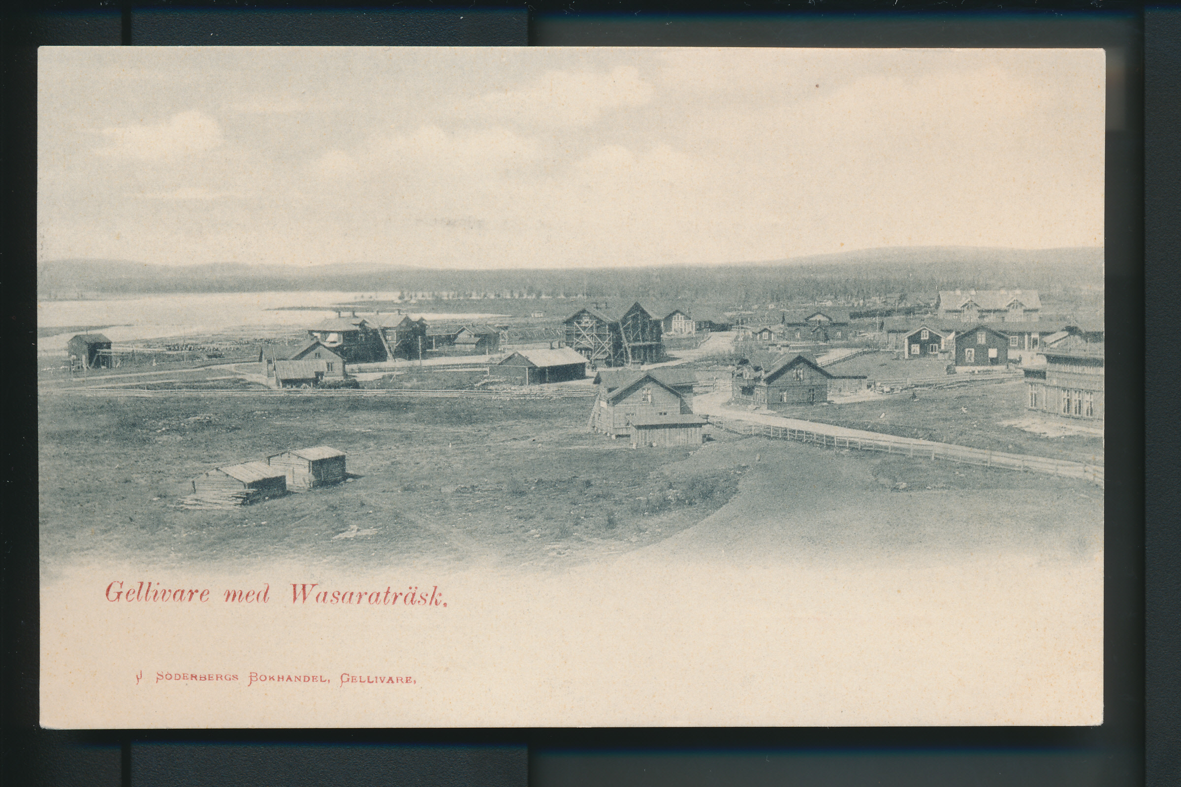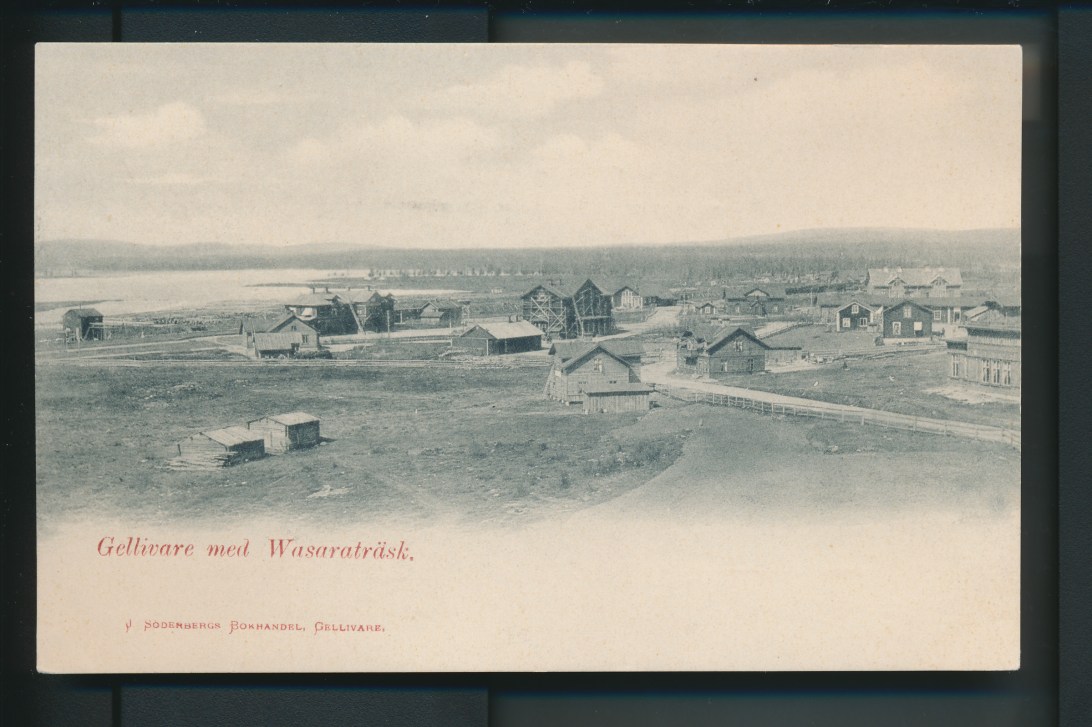 Gellivare Lasarettsgatan med Tingshuset till vänster,fotovy före 1905,troligen år 1901-1902? Wassaraträsk i bakgrunden. J.Patrik Johansson