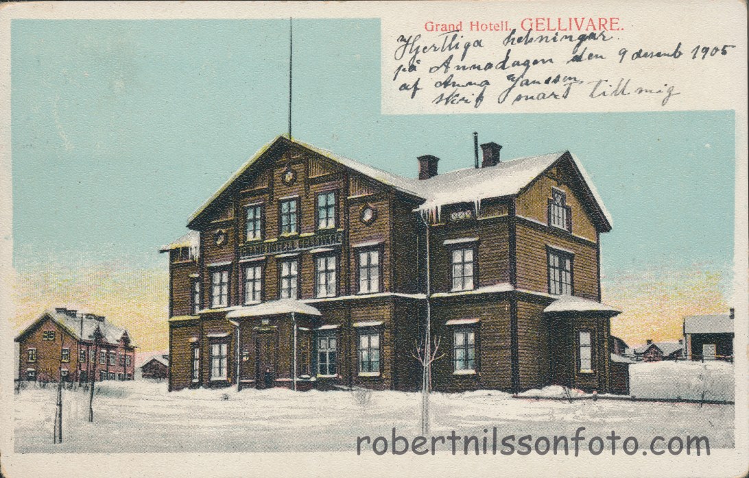 Grand Hotell Gellivare 1905 handkolorerat. Ägare: Robert Nilsson