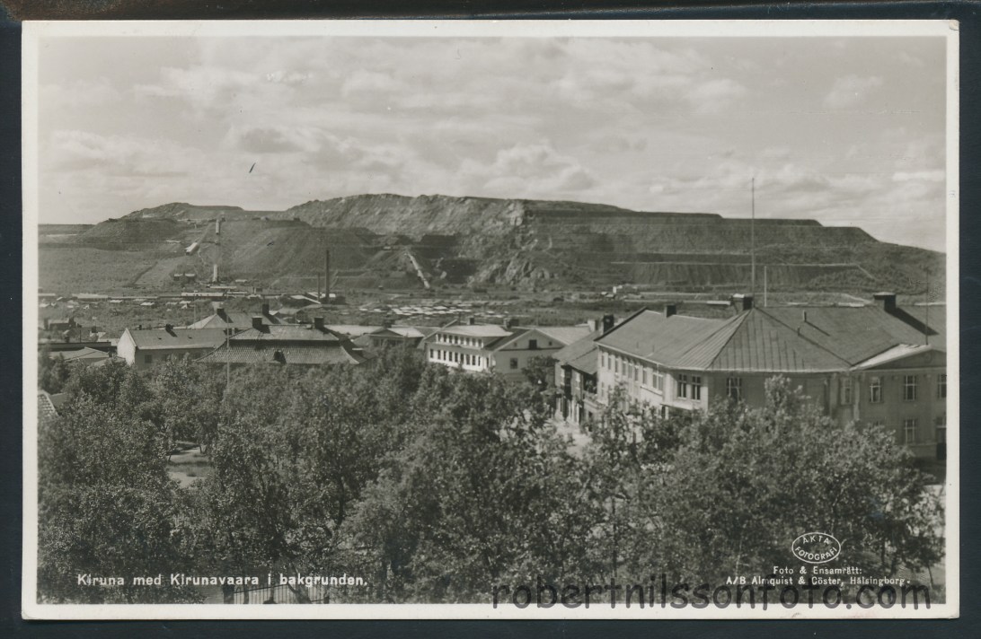 Kiruna med Kirunavaara. Frankerat 1944. Foto Almquist o Cöster_0001
