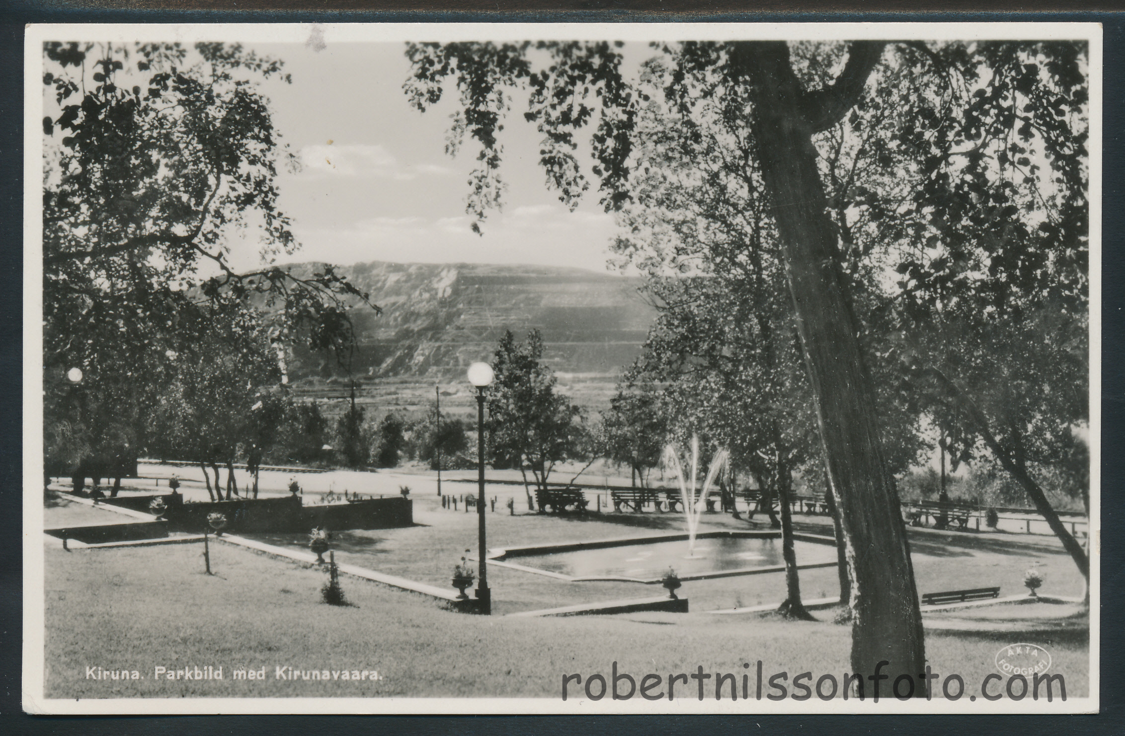 Kiruna. Parkbild med Kirunavaara. Frankerat 1949. Ägare: Robert Nilsson
