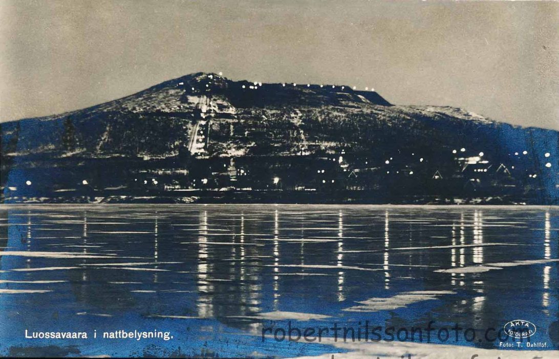 Luossavaara i nattbelysning frankerat 1928. Ägare: Robert Nilsson