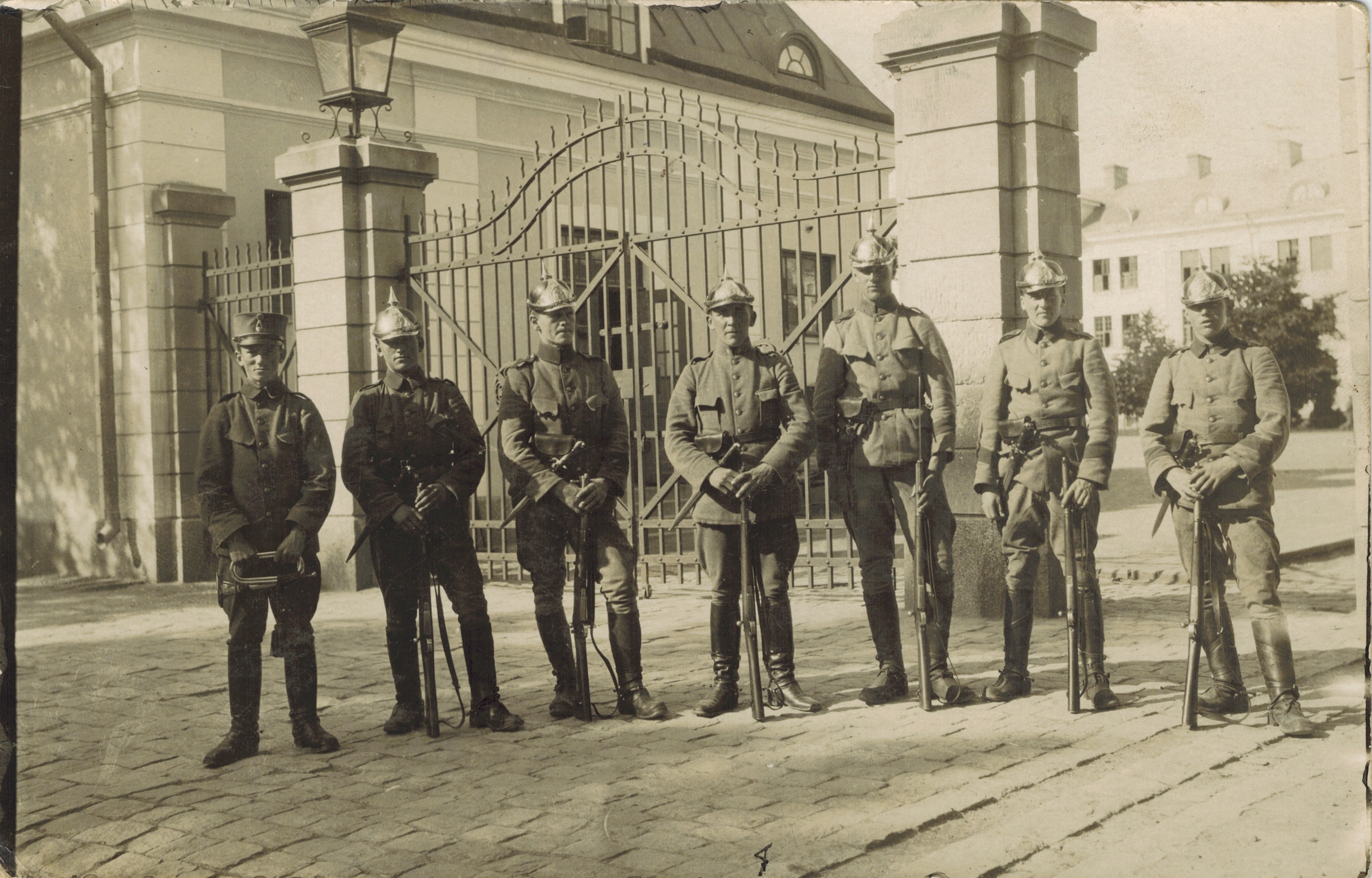 Dragonsoldater vid dåvarande K8 i Umeå år 1926. Ägare: Lennart Olofsson.