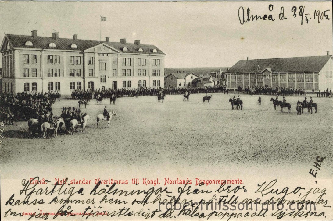 Nytt standar öfverlämnas till Kongl Norrlands Dragonregemente Umeå 1905. Ägare: Lennart Olofsson
