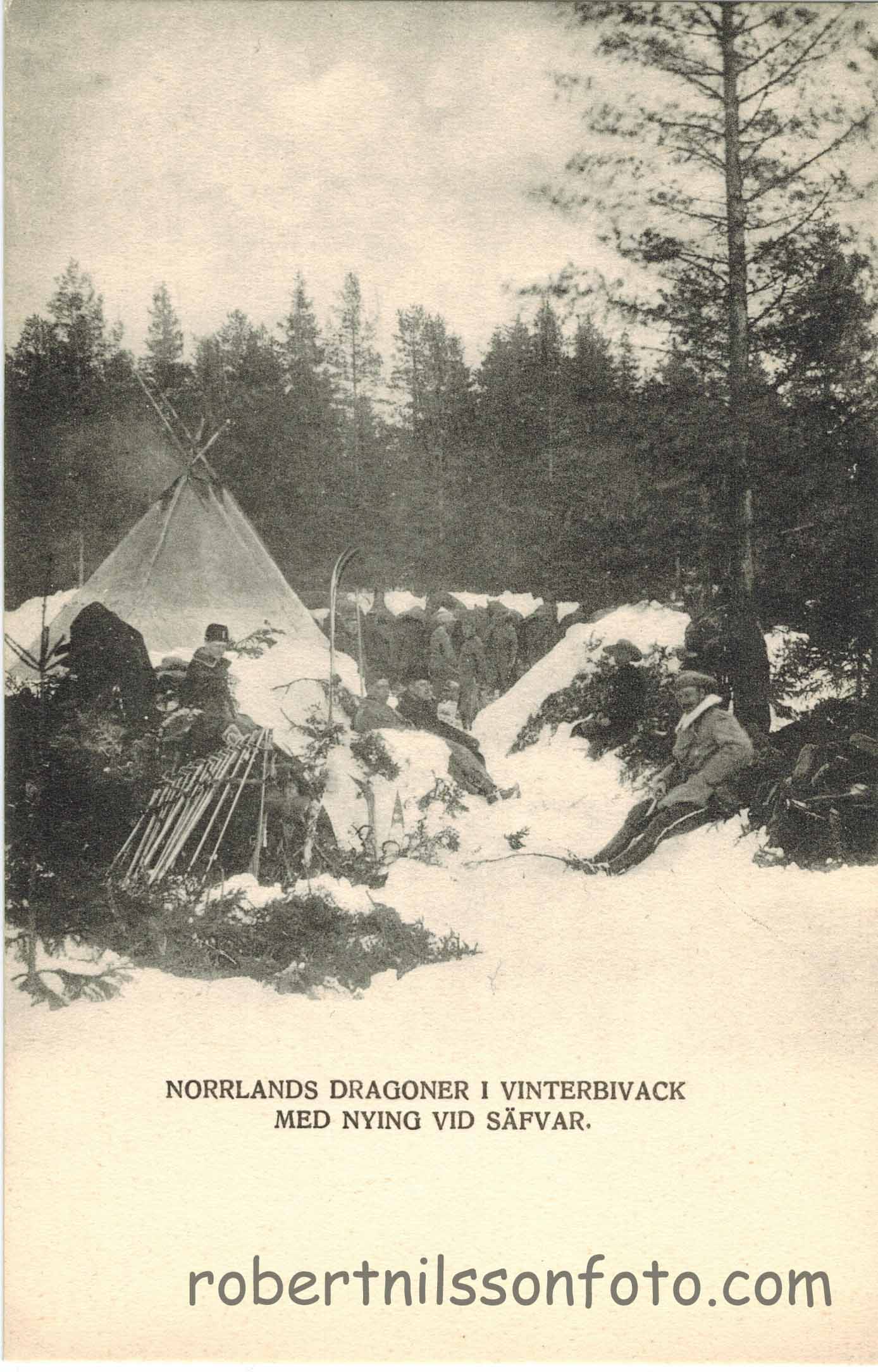 Norrlands Dragoner i vinterbivack med nying vid Säfvar. Ägare: Lennart Olofsson