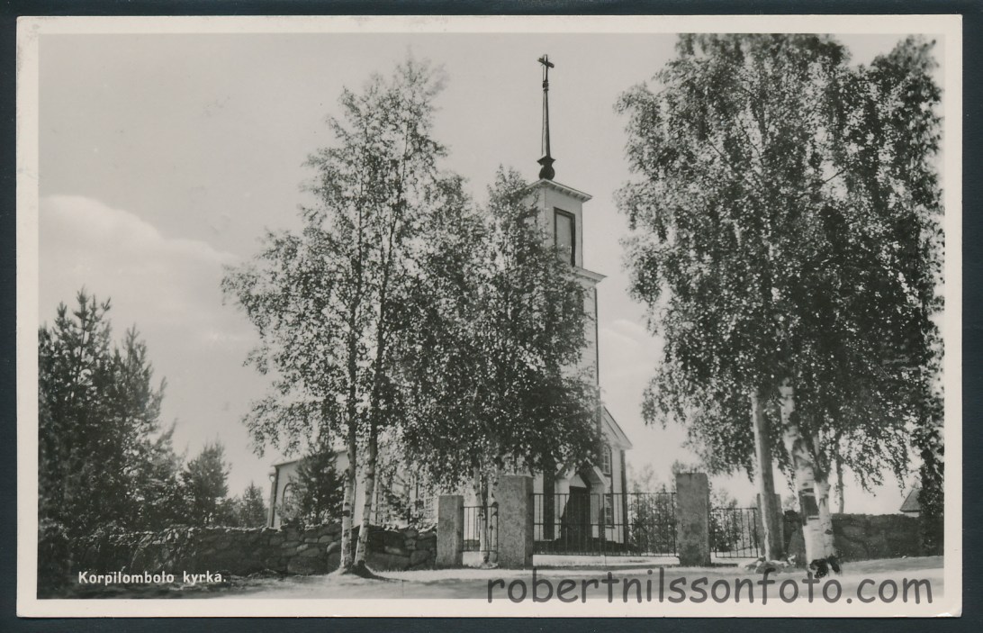 Korpilombolo kyrka. Foto Mauritz Wande. Frankerat 1941. Ägare: Christer Nilsson.