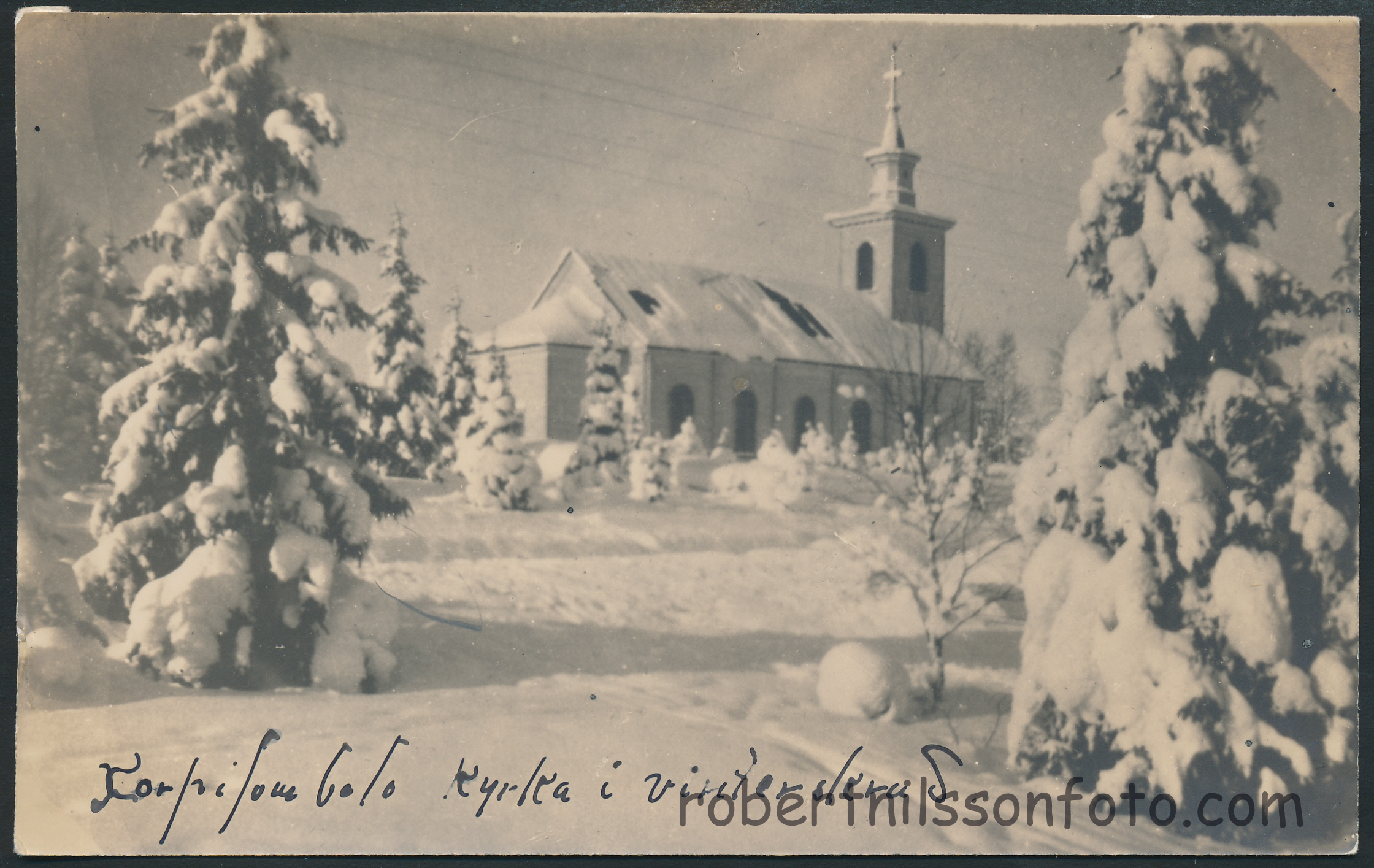 Korpilombolo kyrka i vinterskrud. Foto Knut A Larsson, Korpilombolo. Ägare: Robert Nilsson
