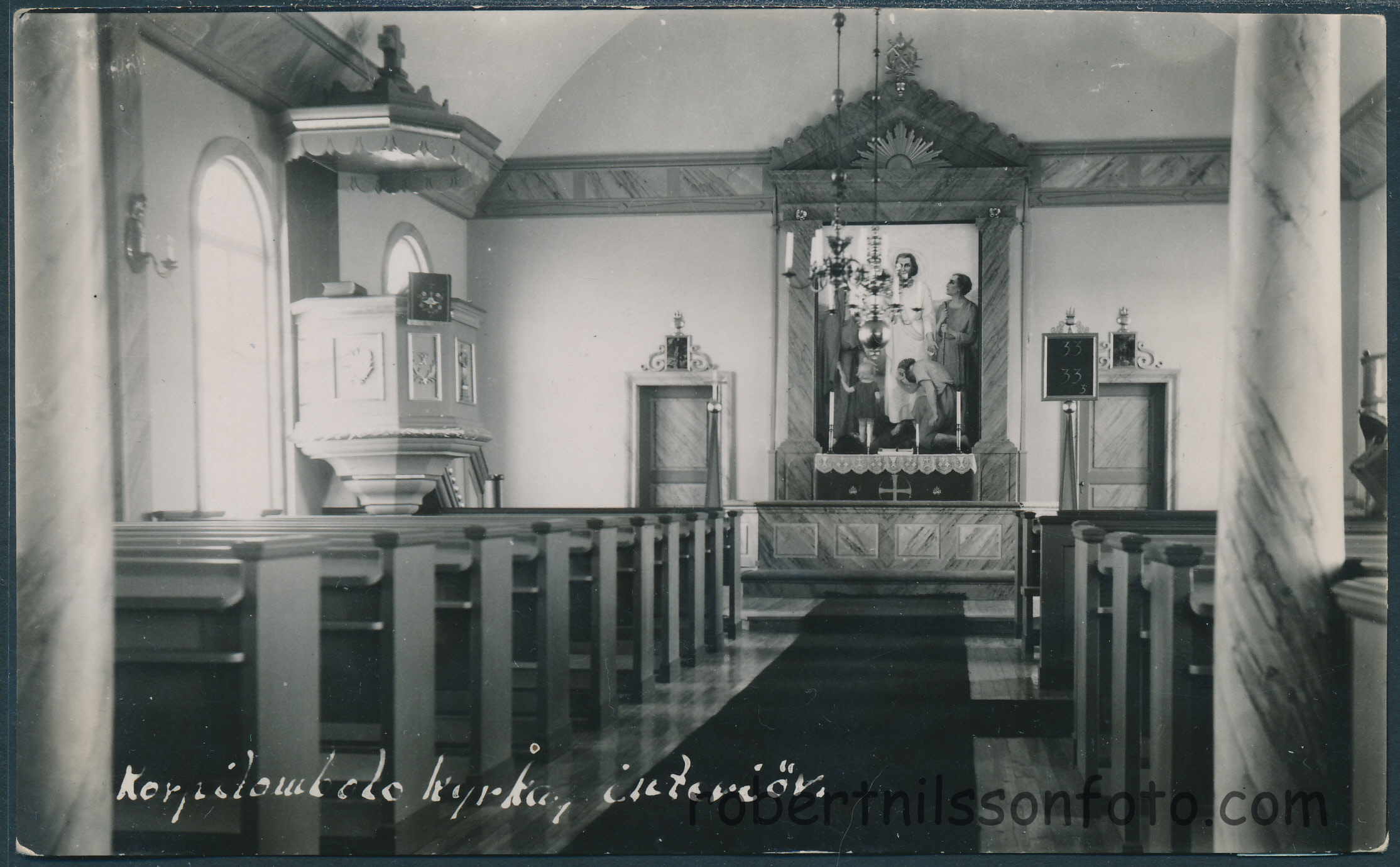Korpilombolo kyrka Interiör. Frankerat 1938. Foto Knut Larsson_0001