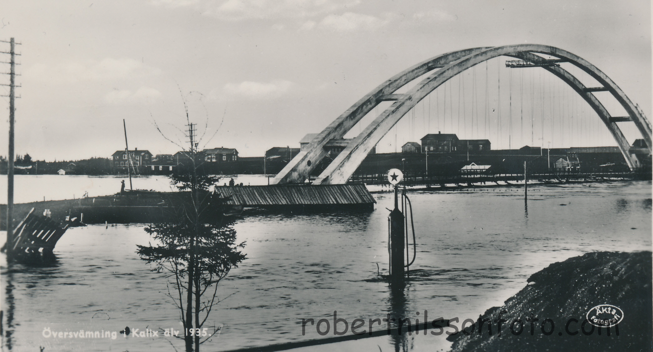 Tärendö 1935. Översvämmad Caltex mack. Ägare: Robert Nilsson
