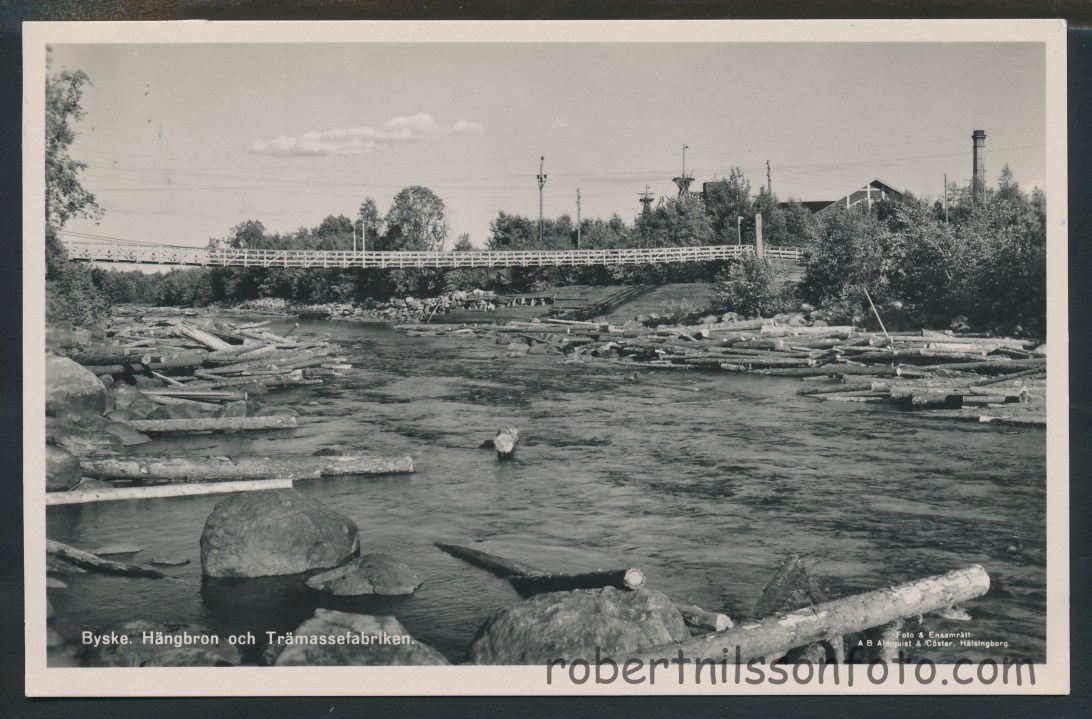 Byske Hängbron och Trämassefabriken. Frankerat 1956_0001