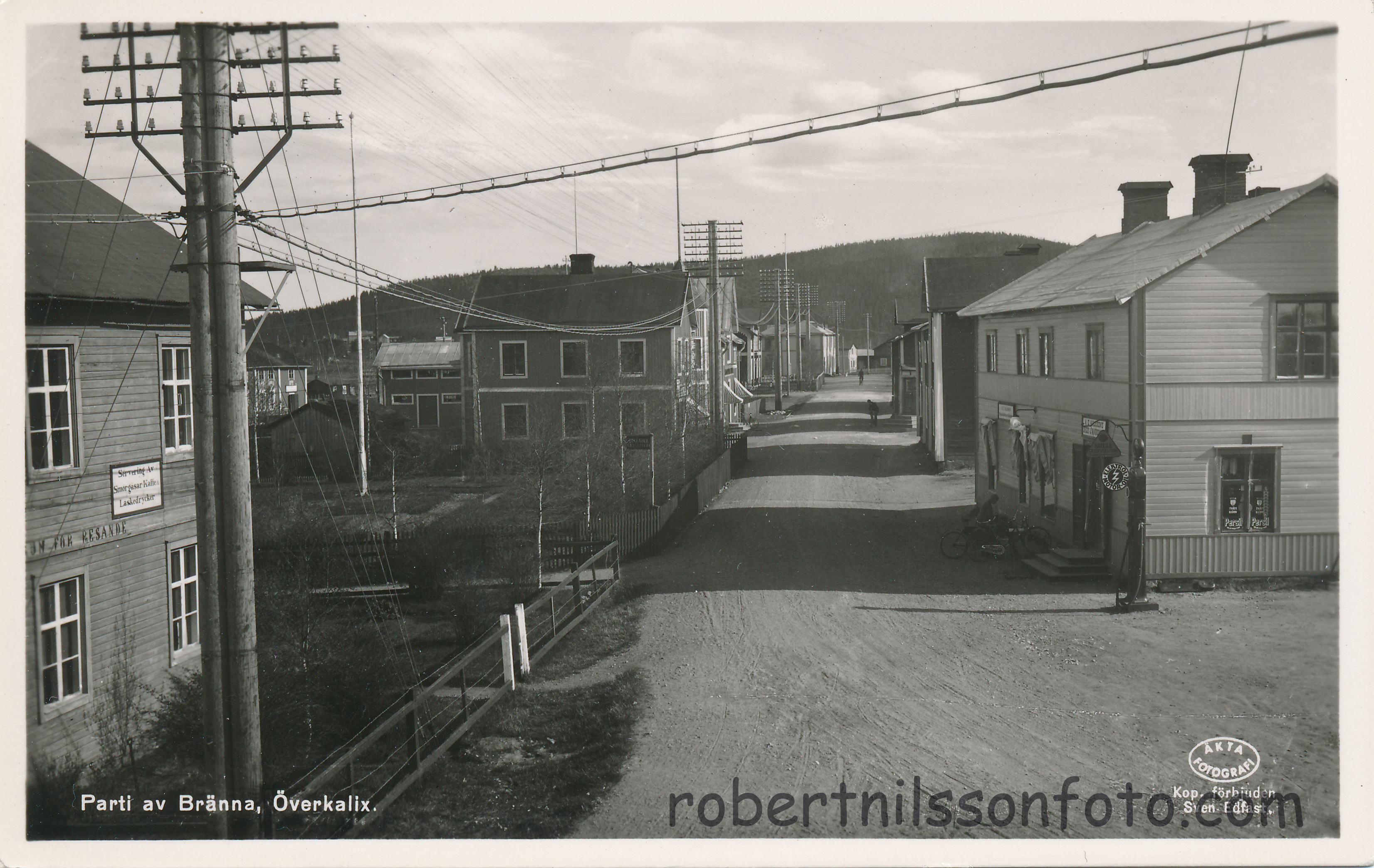 Affärsgata och bensinpump i Bränna Öfverkalix. Foto Sven Edfast